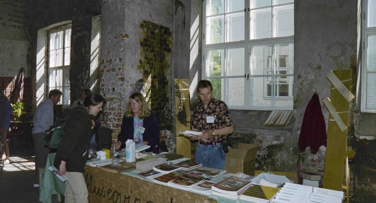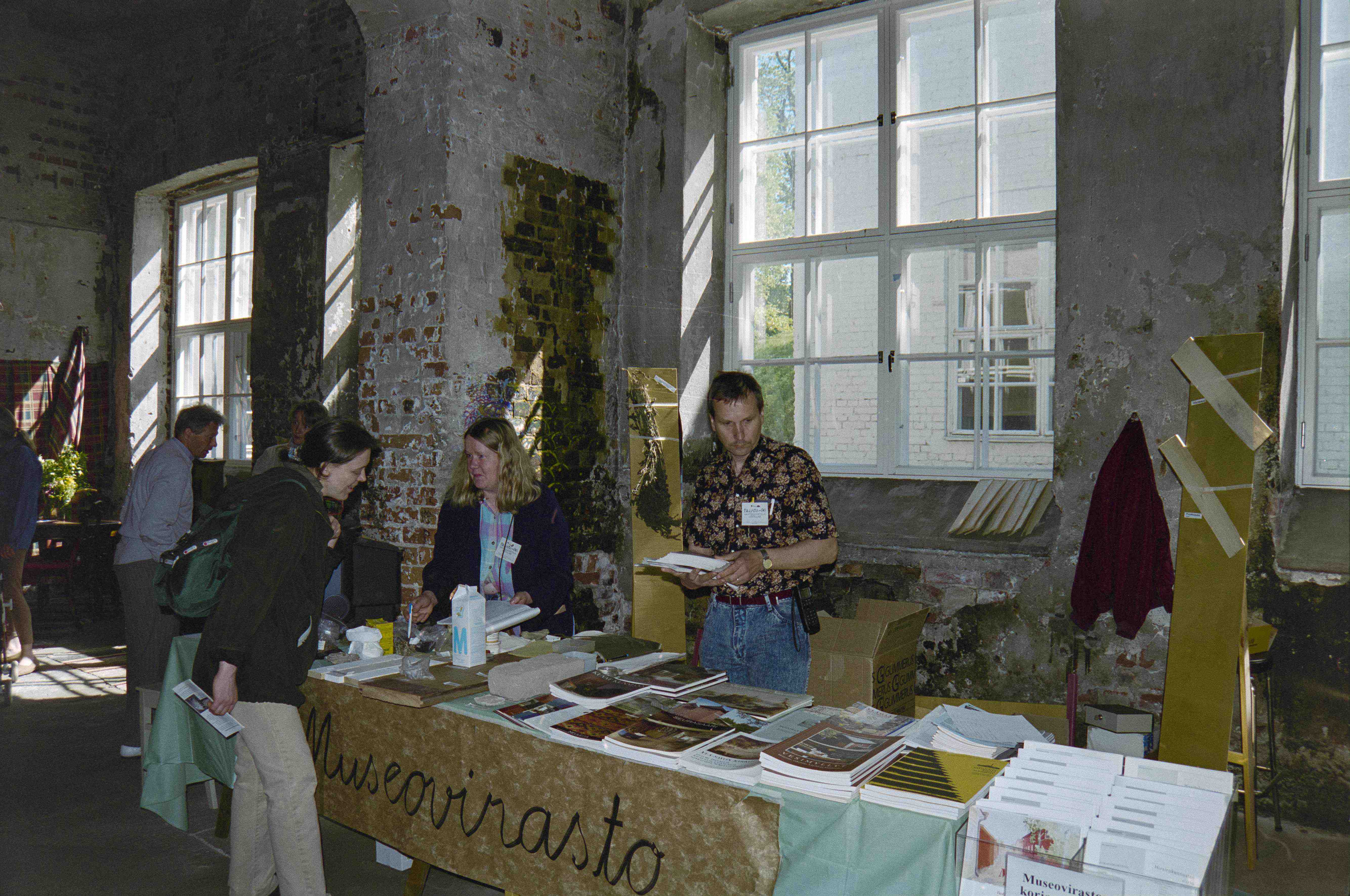 Museovirastolaiset ovat olleet ahkerasti esillä asiantuntijoina oman alansa tapahtumissa sekä tiedotusvälineissä. Maire Heikkinen Museoviraston osastolla Billnäsissä korjausrakentamismessuilla 1996. Kuva: Museovirasto (RHO469676).