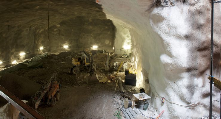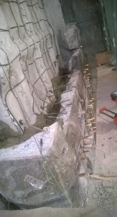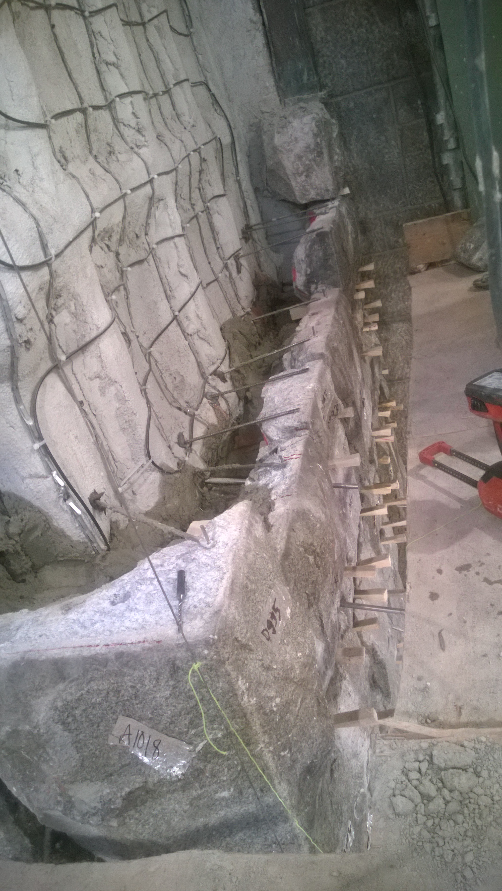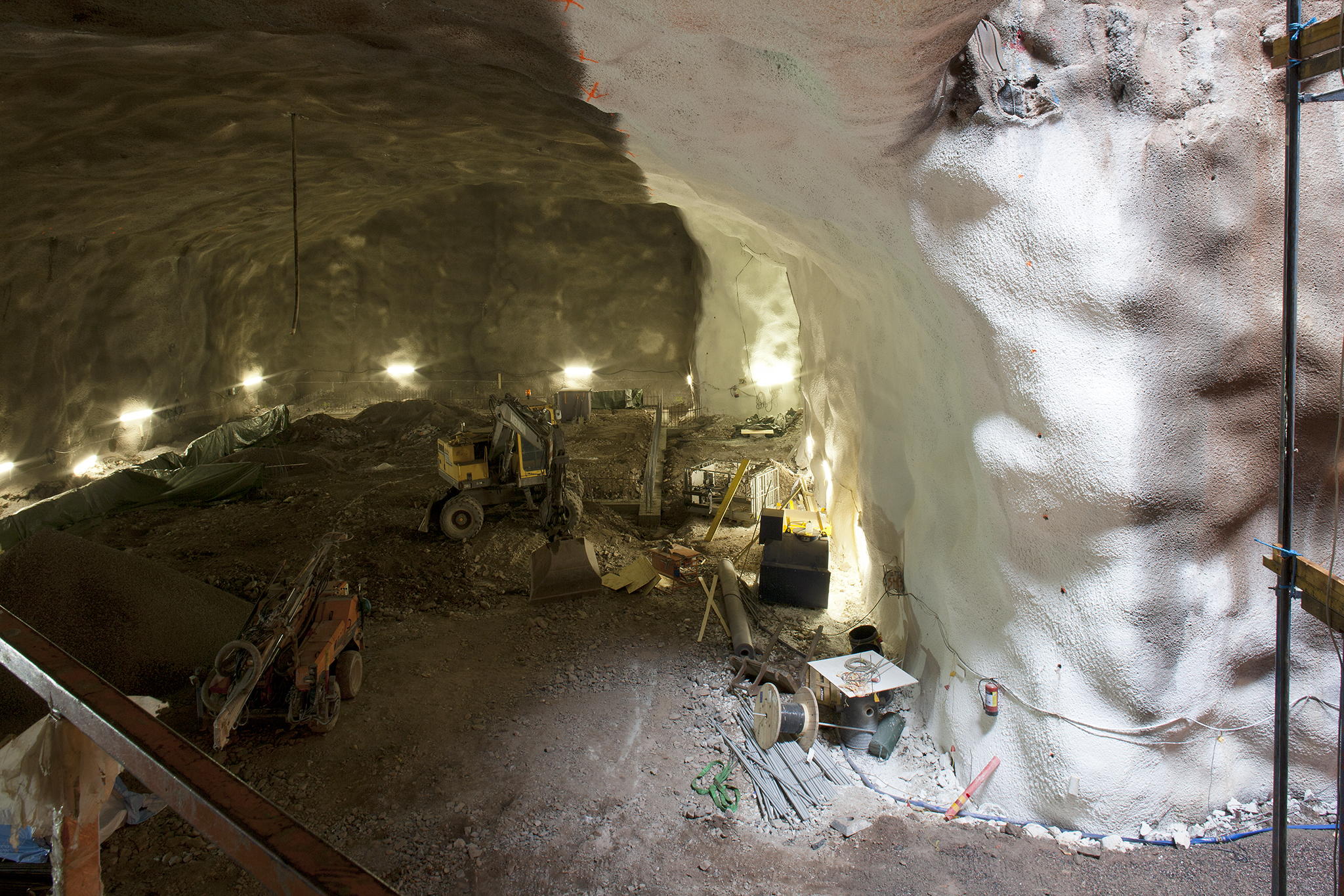 Museon pihan alle louhittua vastaanotto- ja huoltotilaa ruiskubetonoidaan. Kuva: Soile Tirilä, Museovirasto.