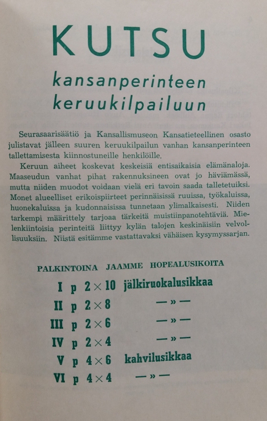 Kansanperinteen keruukilpailut kansatieteellisen keruutyön uutena kulta-aikana
