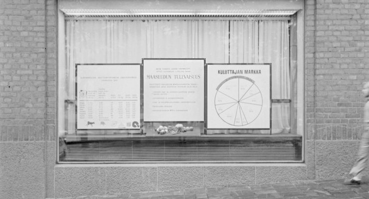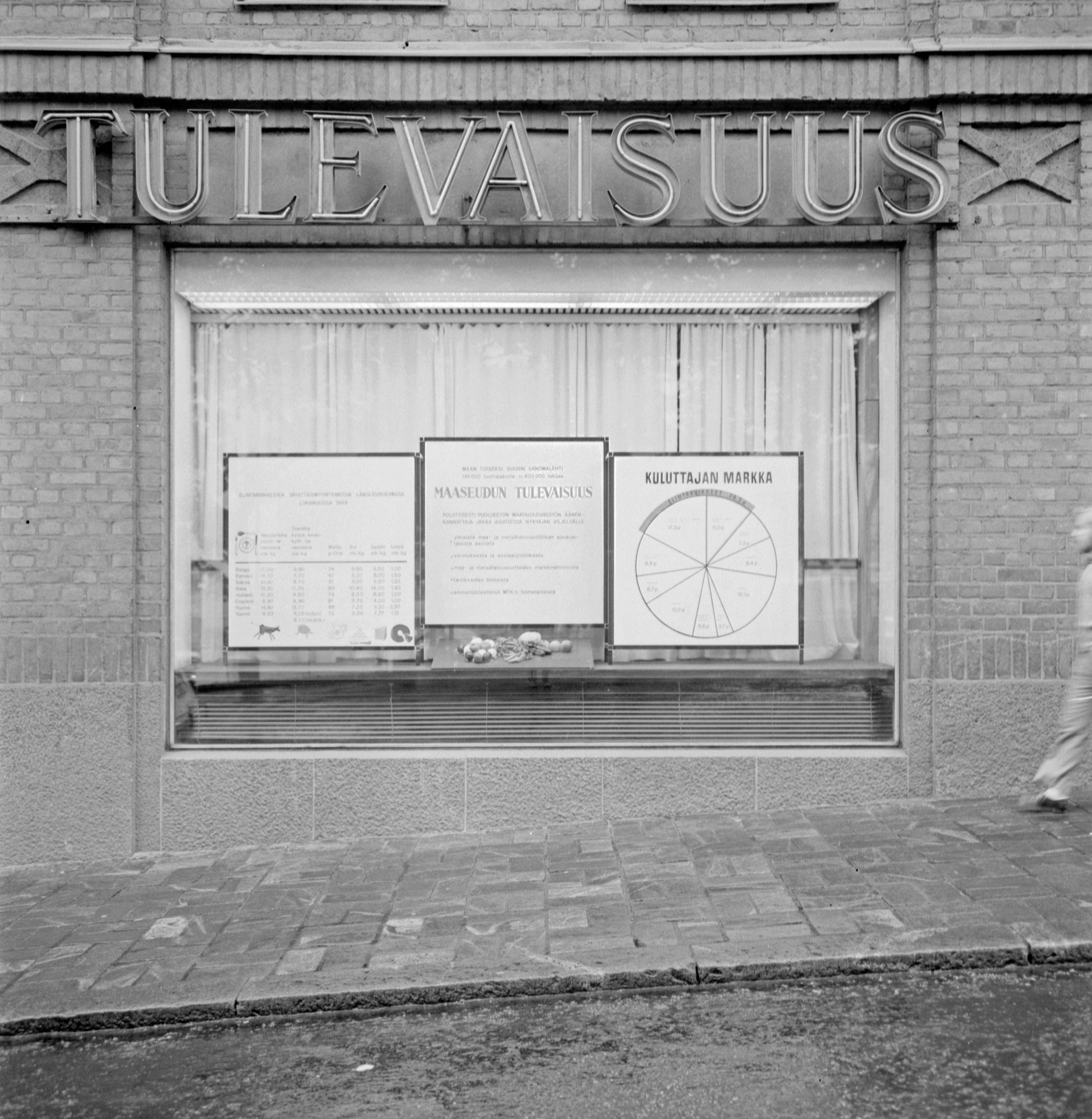 Maaseudun Tulevaisuuden toimituksen ikkuna Maalaistentalossa Helsingissä noin vuonna 1960. Kuva: Erkki Voutilainen, Museovirasto (JOKAMT2MT62:1).