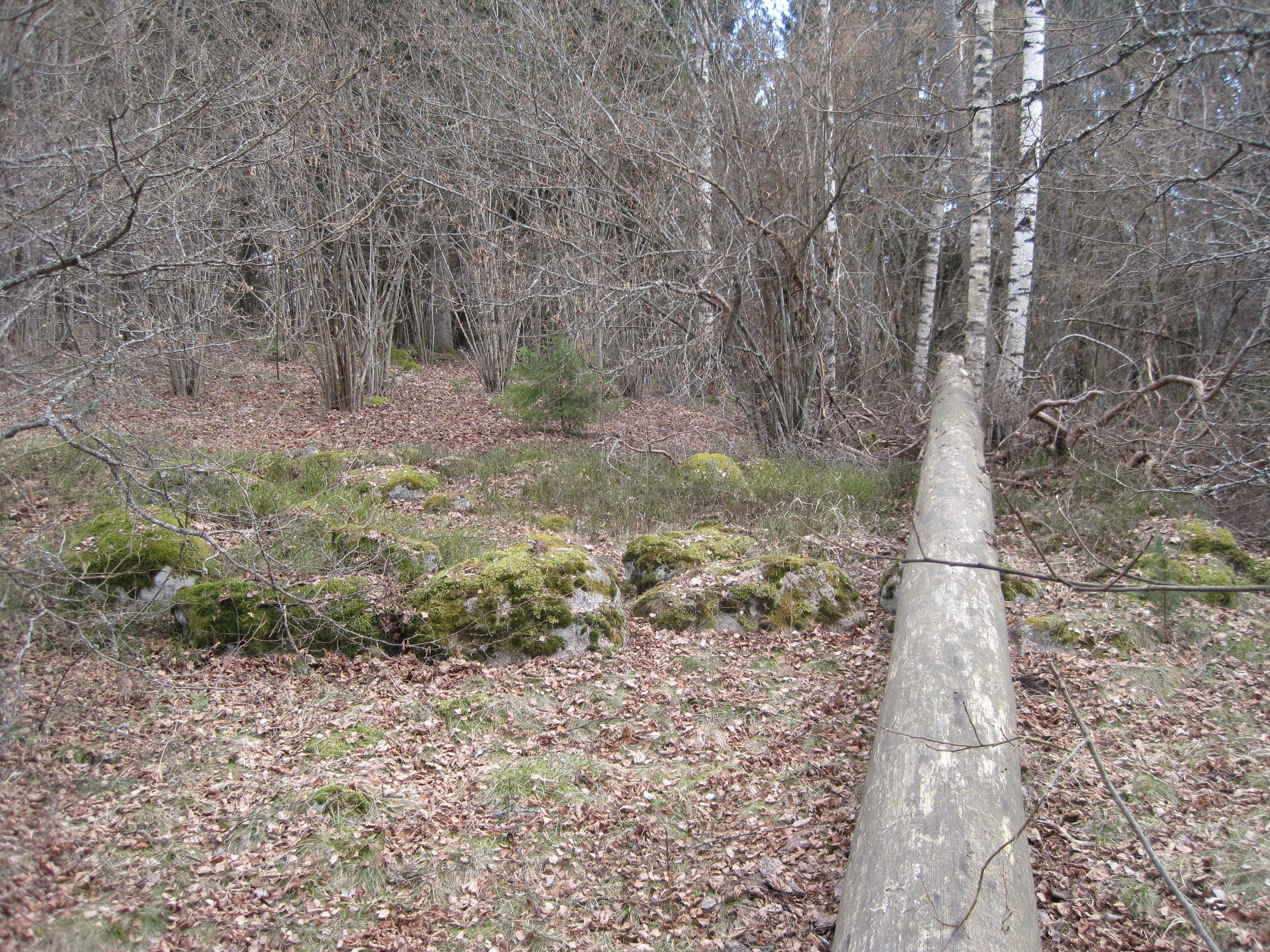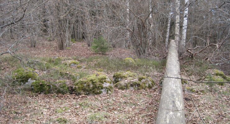 Raaseporin Brobackan hautalatomus myrskyn jälkeen, kun kohteen hoito on lopetettu eikä esimerkiksi tuulenkaatoja enää raivata pois muinaisjäännöksen rakenteiden päältä. Kuva: Päivi Maaranen.