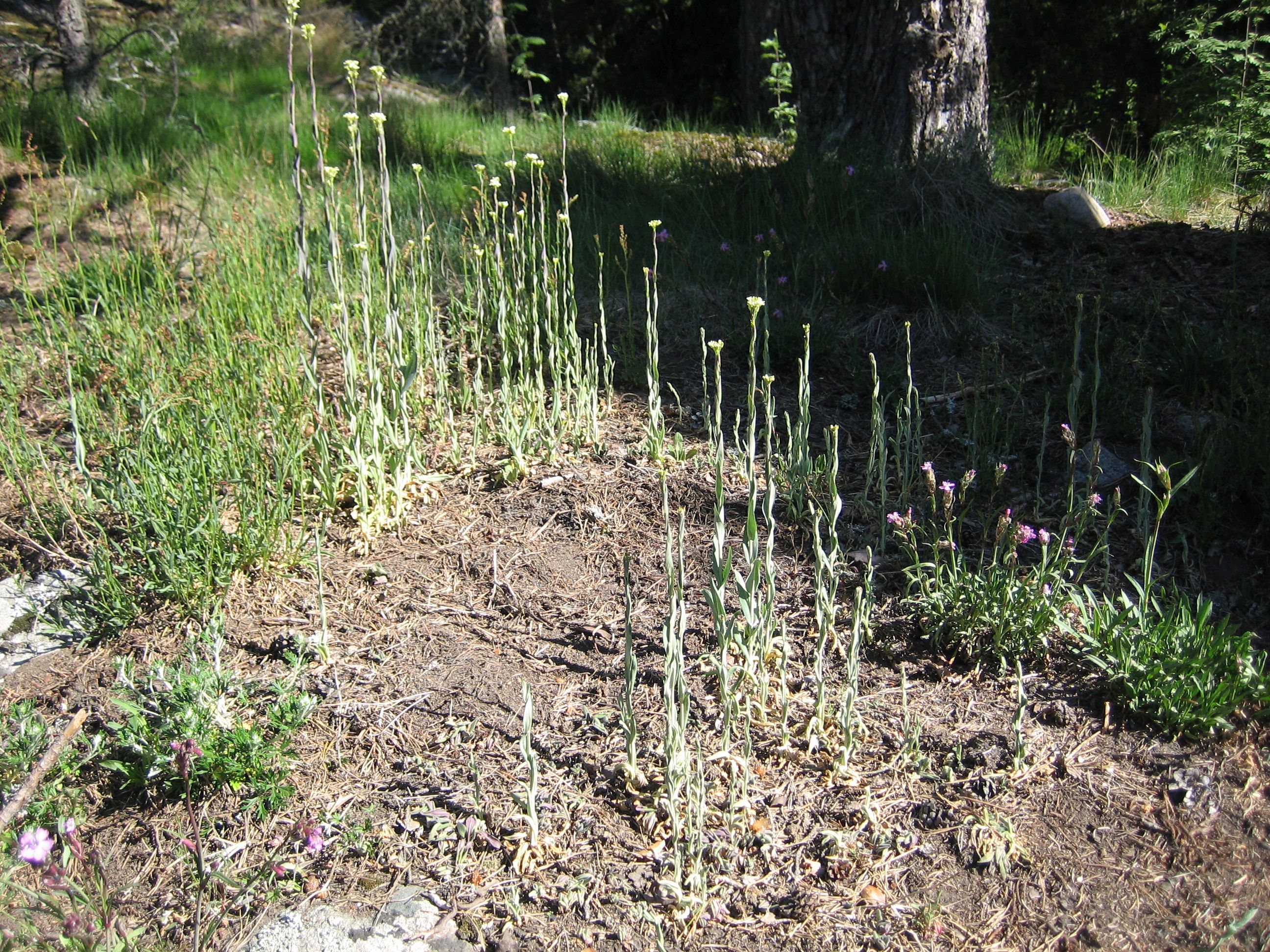 Raaseporin Brobackassakin kasvava pölkkyruoho (Arabis glabra) on arkeofyytti eli menneisyyden ihmistoimintaan liittyvä kasvilaji. Kuva: Päivi Maaranen.