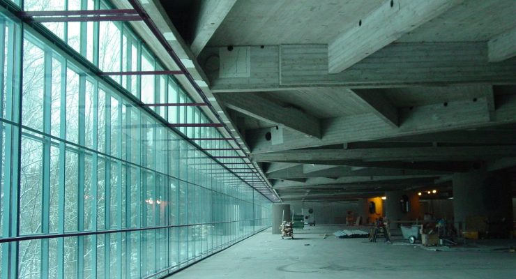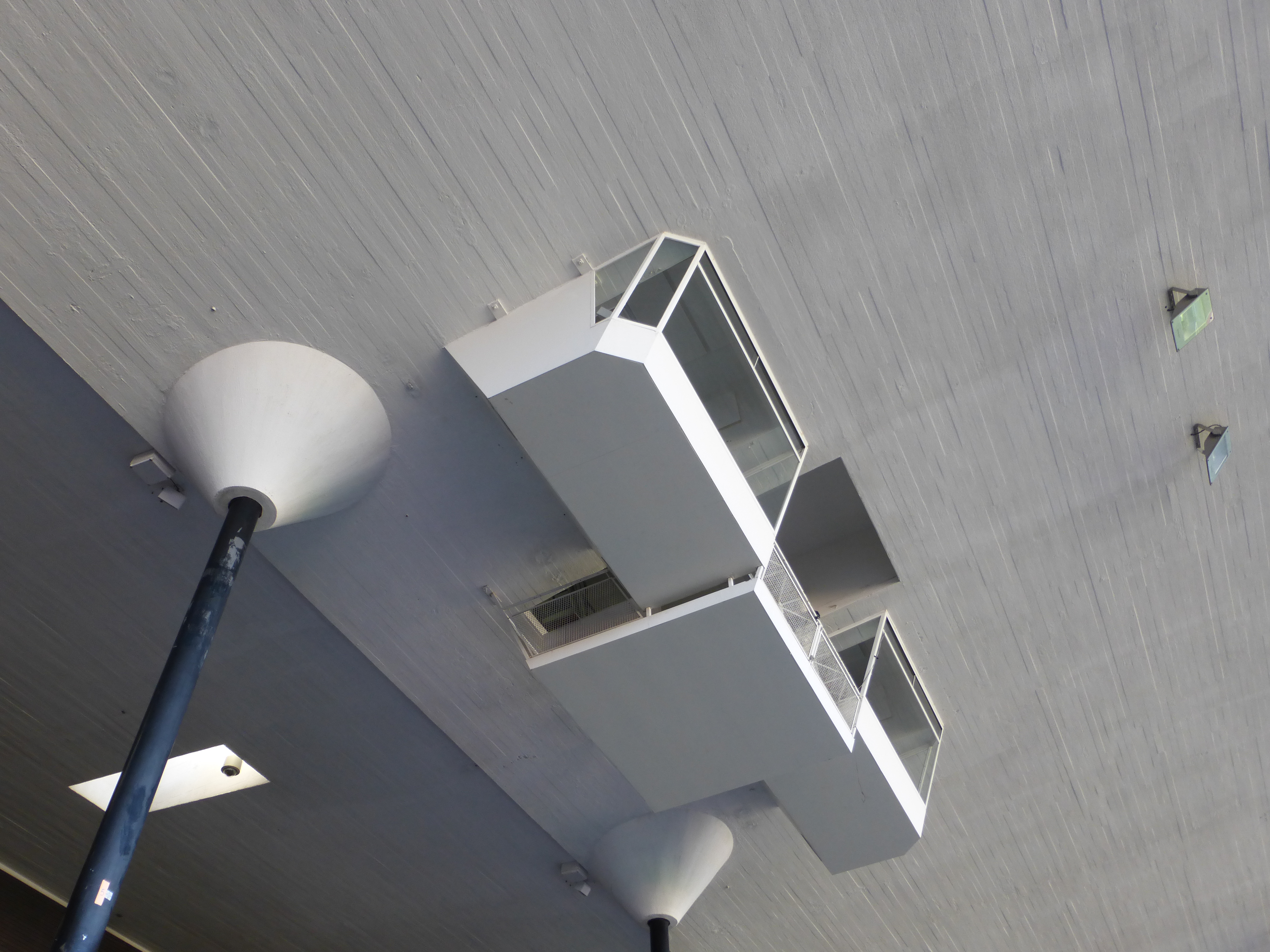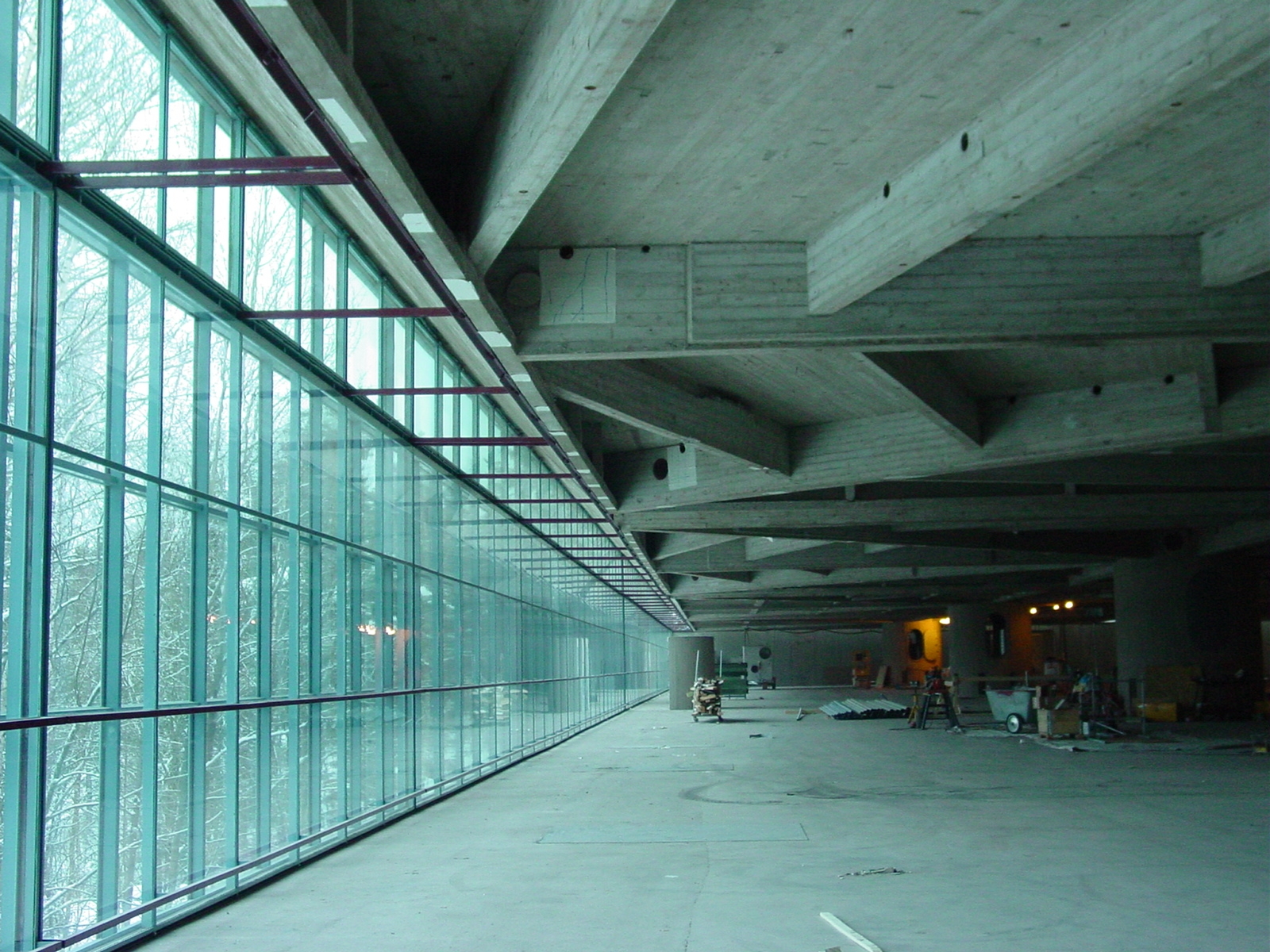 WG-rakennuksen toisesta kerroksesta poistettiin museokäytön myötä alumiinialakatto, joka oli osin peittänyt ja samalla visuaalisesti tasapainottanut betoniosia – sisätiloihin tuli siis lisää näkyvää betonia (Kuva 19). Rakennuksen rakenteiden, järjestelmien ja materiaalien keskinäinen logiikka on syytä tuntea hyvin.