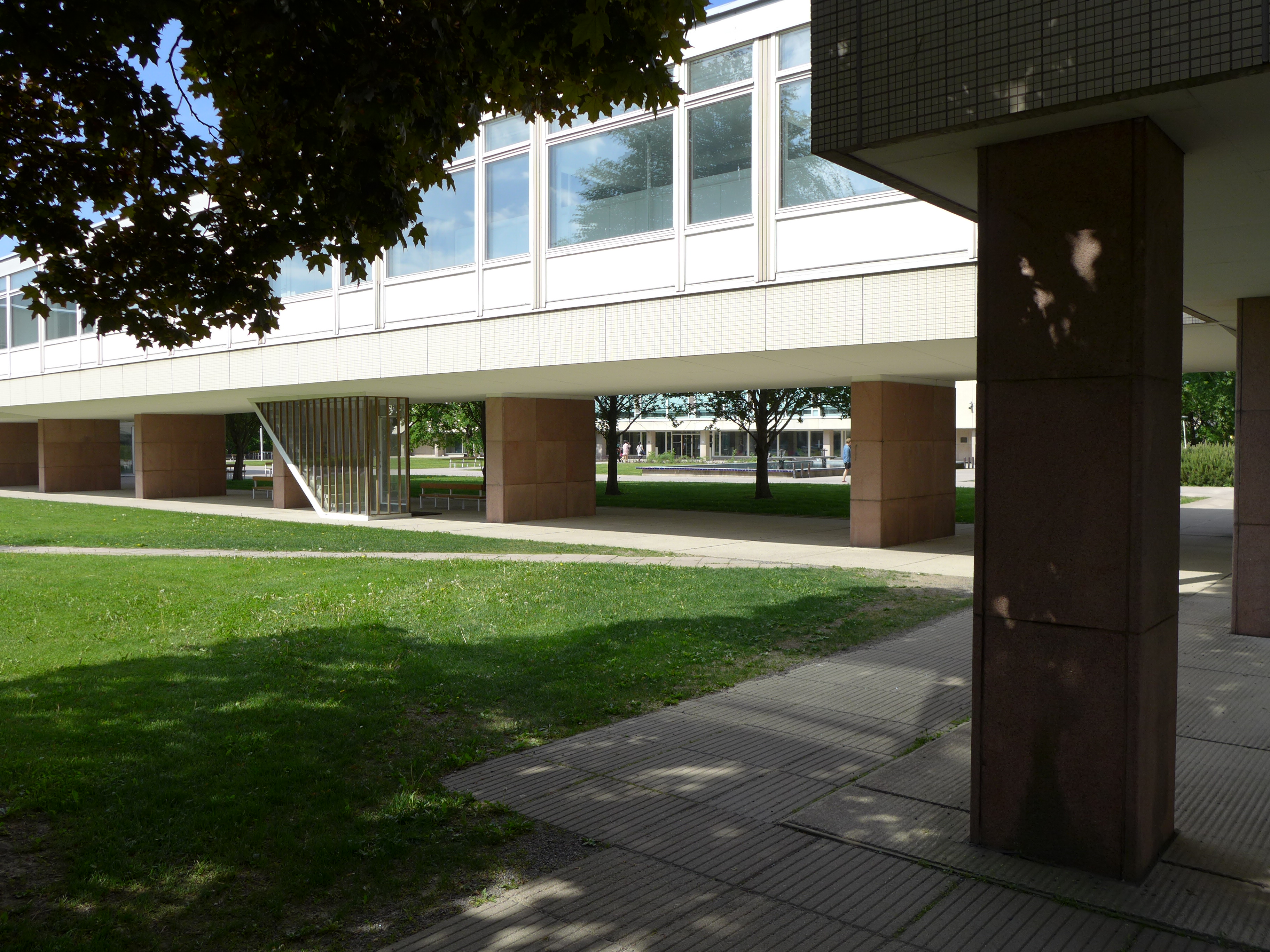 Oulun yliopistossa hallitsevat yleispätevyys ja järjestelmäarkkitehtuuri (Kuva 20). Sekä rakenteet että tekniset järjestelmät ovat näkyvissä ja erottamaton osa rakennuksen arkkitehtuuria. Kokonaisuuteen kuuluvat myös opastejärjestelmät, kalusteet ja niiden värimaailma