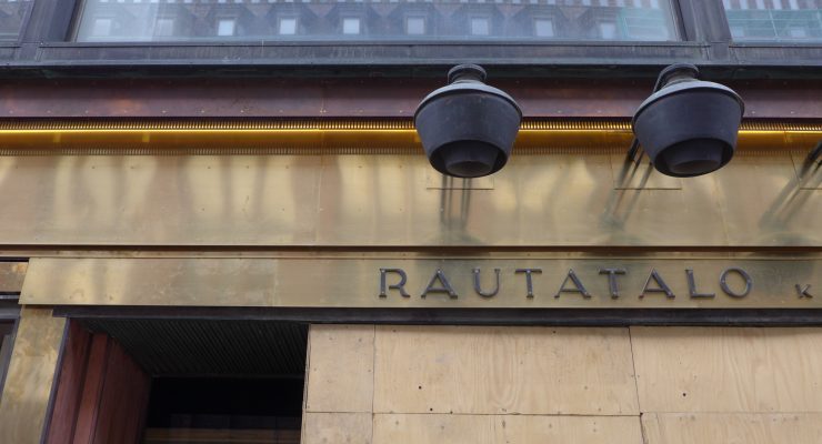 Helsingin liikekeskustan ytimessä sijaitsevan Rautatalon katujulkisivun kunnostuksessa tavoitteena oli säilyttää arkkitehtuuri yksityiskohtiaan myöten (Kuva 4). Alkuperäisten osien ja ajan kulusta kertovan patinan vaaliminen on tyypillinen haaste minkä tahansa ikäisen kohteen restauroinnissa. Valaisimet on kiinnitetty messinkilevyyn, joka päätettiin uusia, koska se oli täynnä kiinnitysreikiä ja kolhuja. Sen yläpuolisen valaisinnauhan suojalista oli patinan ohella peittynyt pinttyneeseen katupölyyn, jota poistettaessa menetettiin myös osa patinasta. Muissa kupariosissa, kuten valaisimissa, ”Rautatalo” -kirjaimissa, ja julkisivun ylemmissä osissa selvittiin kevyellä puhdistuksella, ja patina säilyi. Käsittelemätön uusi kupari ja messinki patinoituvat tummaksi lyhyessä ajassa.
