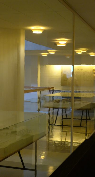 Kuva 7. Porthanian luentosalin lasiseinän korvaavan lasin malli. Kuva: Sirkkaliisa Jetsonen.