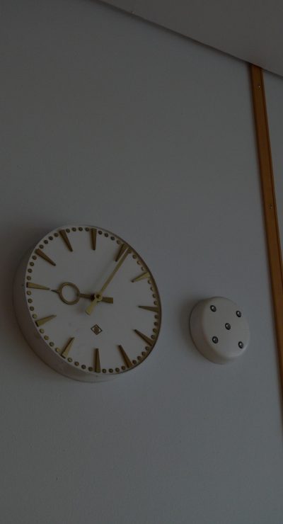 Monesti on perusteltua säilyttää myös käytöstä poistuneita ja merkityksensä menettäneitä alkuperäisiä teknisiä yksityiskohtia. Enson pääkonttorissa säilytettiin paikoillaan jo aikoja sitten käytöstä jääneen kutsujärjestelmän hälyttimet (Kuva 23).