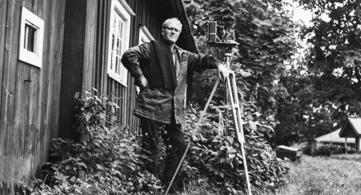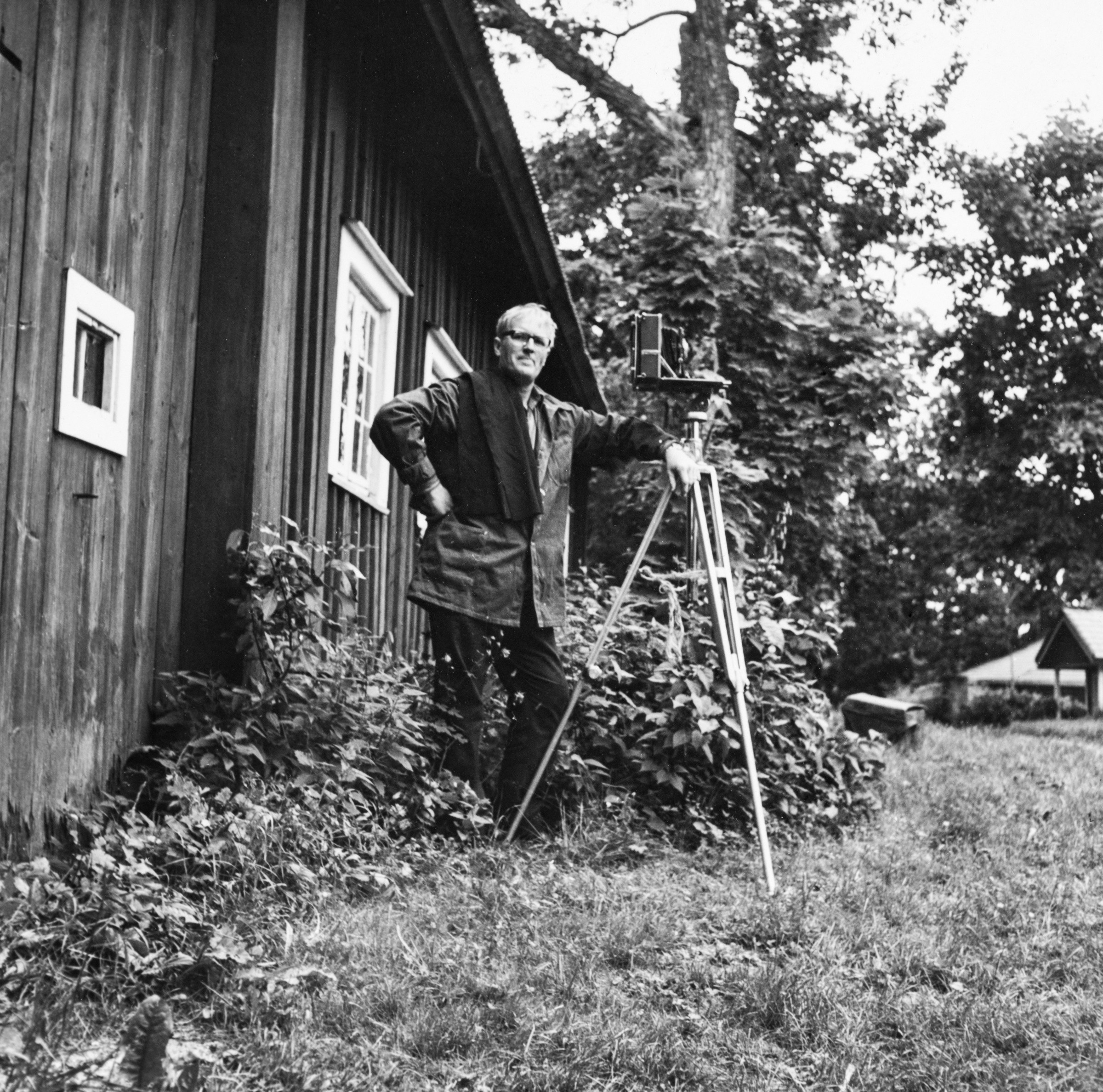 Valokuvaaja P. O. Welin dokumentoimassa Kiskon Mommolan kartanoa omilla työvälineillään. Kuva: Elias Härö, Museovirasto (RHO469644).