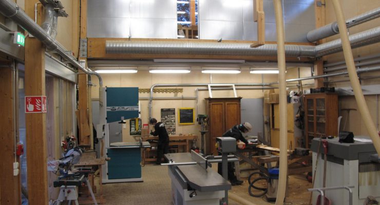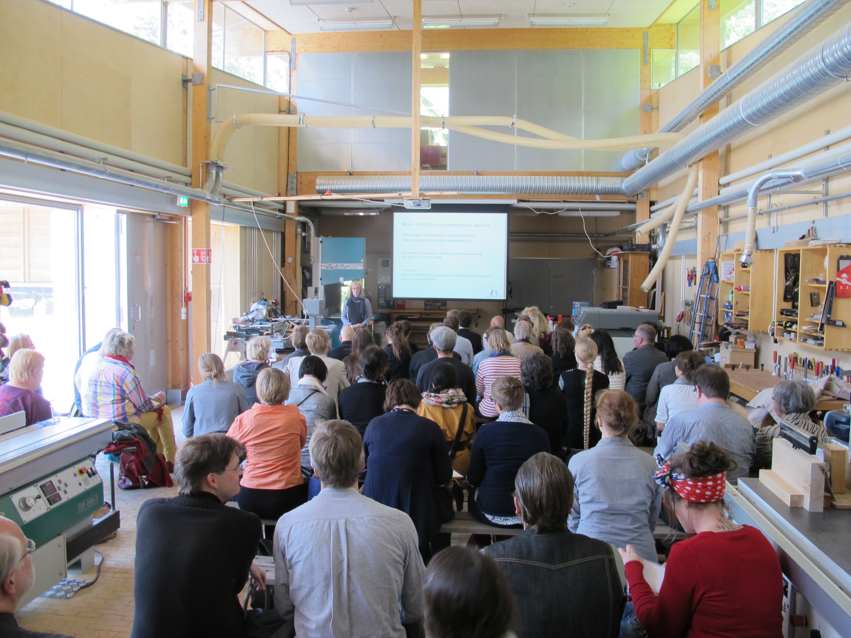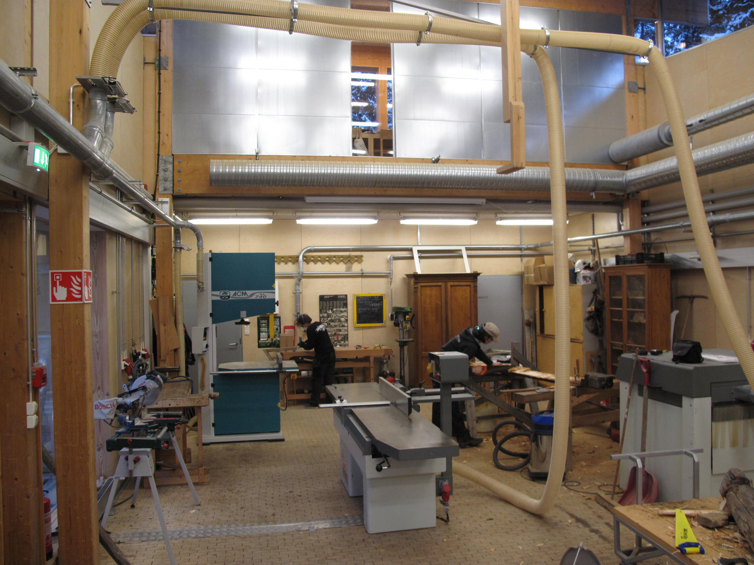Työskentely puutyöverstaassa moderneilla puuntyöstökoneilla ja pintojen viimeistely perinteisillä piilukirveillä tai käsihöylillä tuntuvat turvalliselta toimivassa työympäristössä. Käytännöllinen lankunpäälattia herättää ihailua yhteistyötahojen vieraillessa keskuksessamme. Verstaan suurta tilaa hyödynnetään toisinaan alan seminaarien järjestämiseen, sillä sinne mahtuu istuimet noin 50 vieraalle.