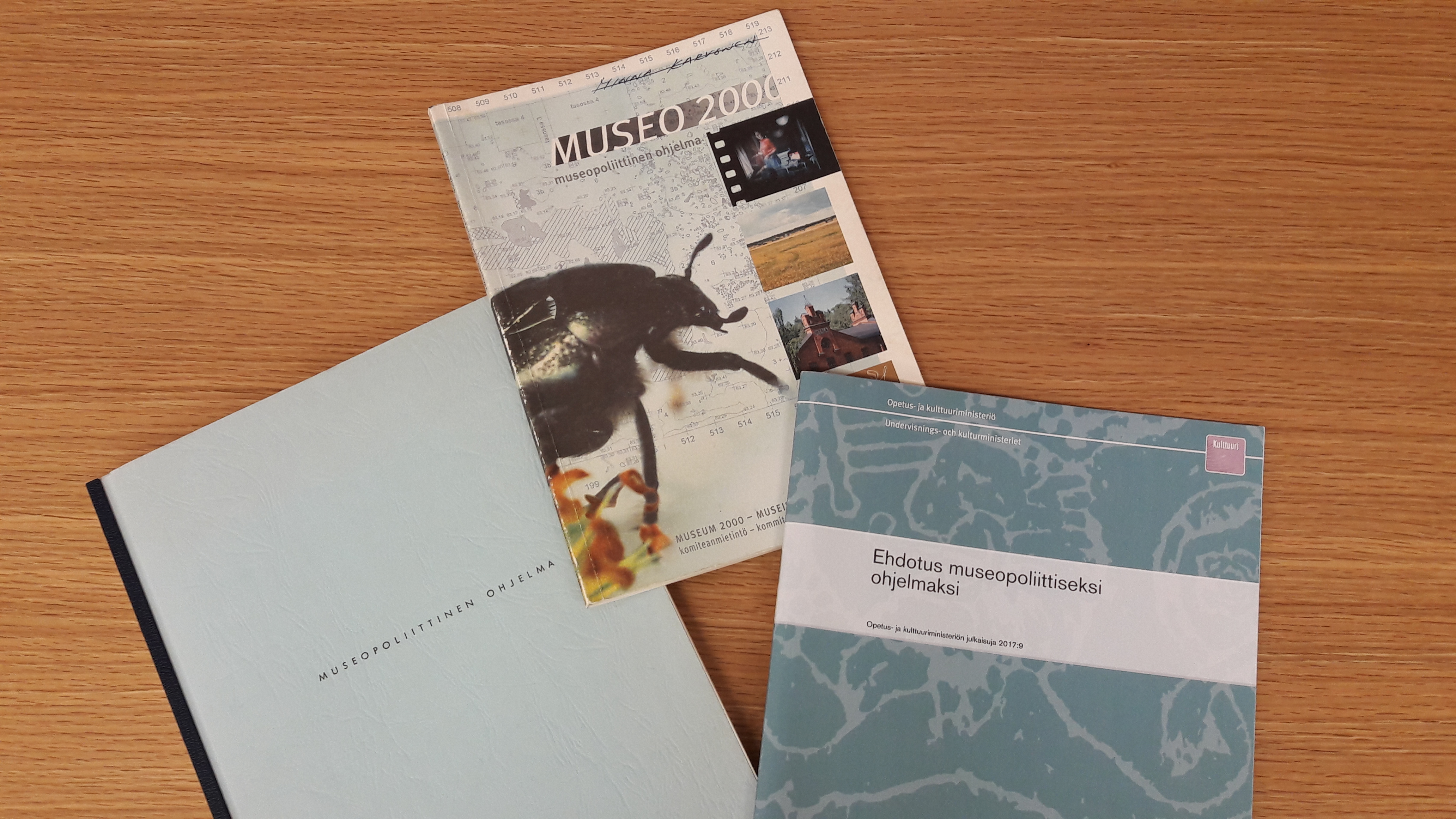 Vuonna 1981 valmistunut museopoliittinen ohjelma oli ensimmäinen laatuaan Suomessa. Alkuvuodesta 2017 valmistui järjestyksessä kolmas työryhmän ehdotus museopoliittiseksi ohjelmaksi. Kuva: Pirjo Hamari, Museovirasto CC BY 4.0.