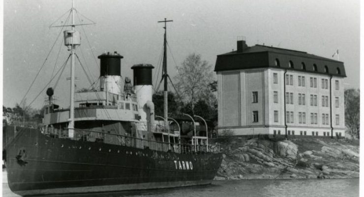 Suomen merimuseon avajaiset. Etualalla j/m Tarmo, takana merimuseon päärakennus. Kuva: Timo Syrjänen, Suomen merimuseo (SMK90047:1), CC BY 4.0.
