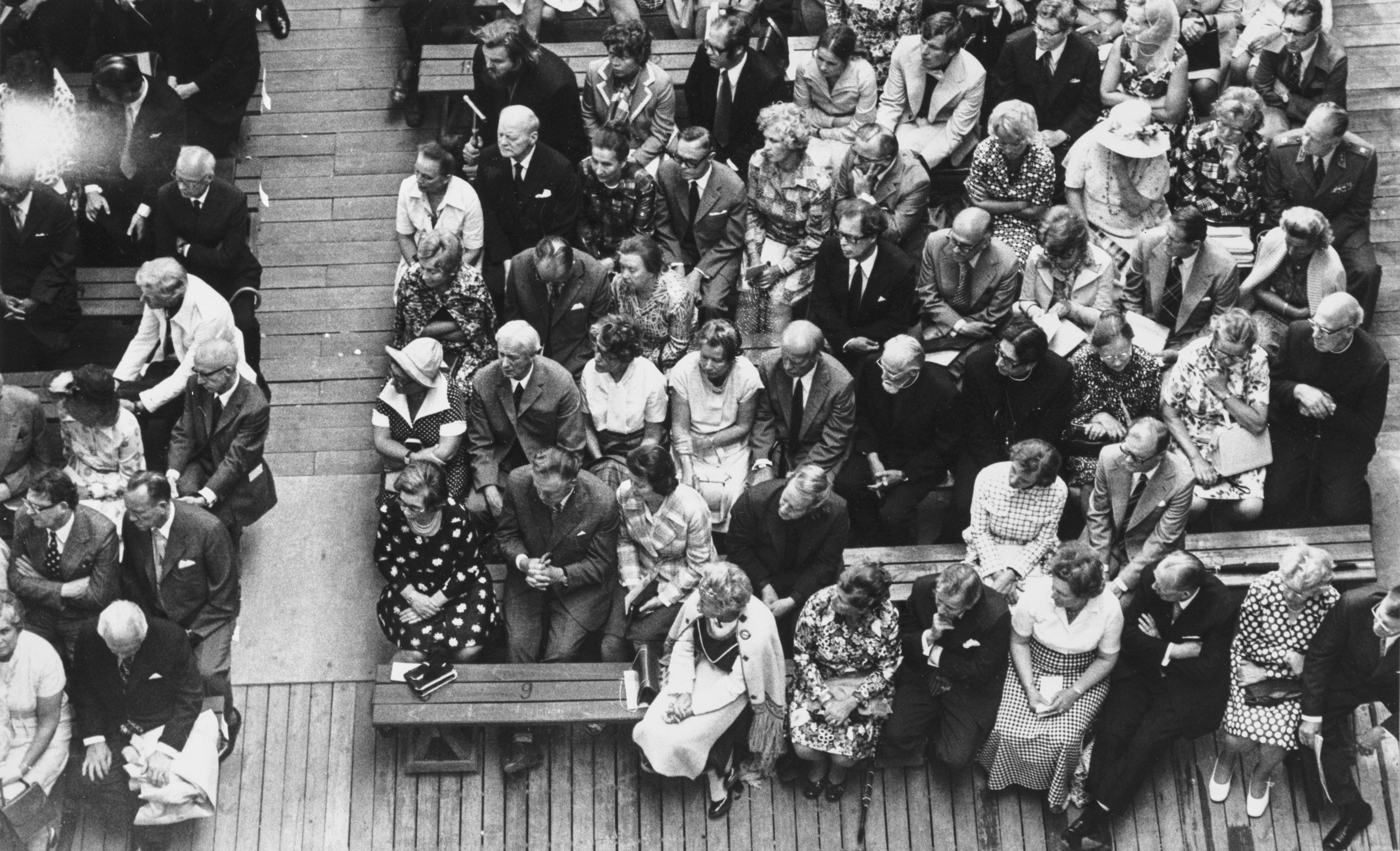 Vieraita Olavinlinnan juhlallisuuksissa. Kuva: Museovirasto (RHO469653).
