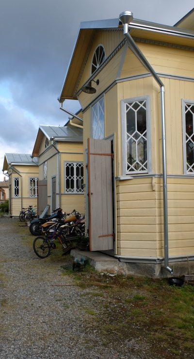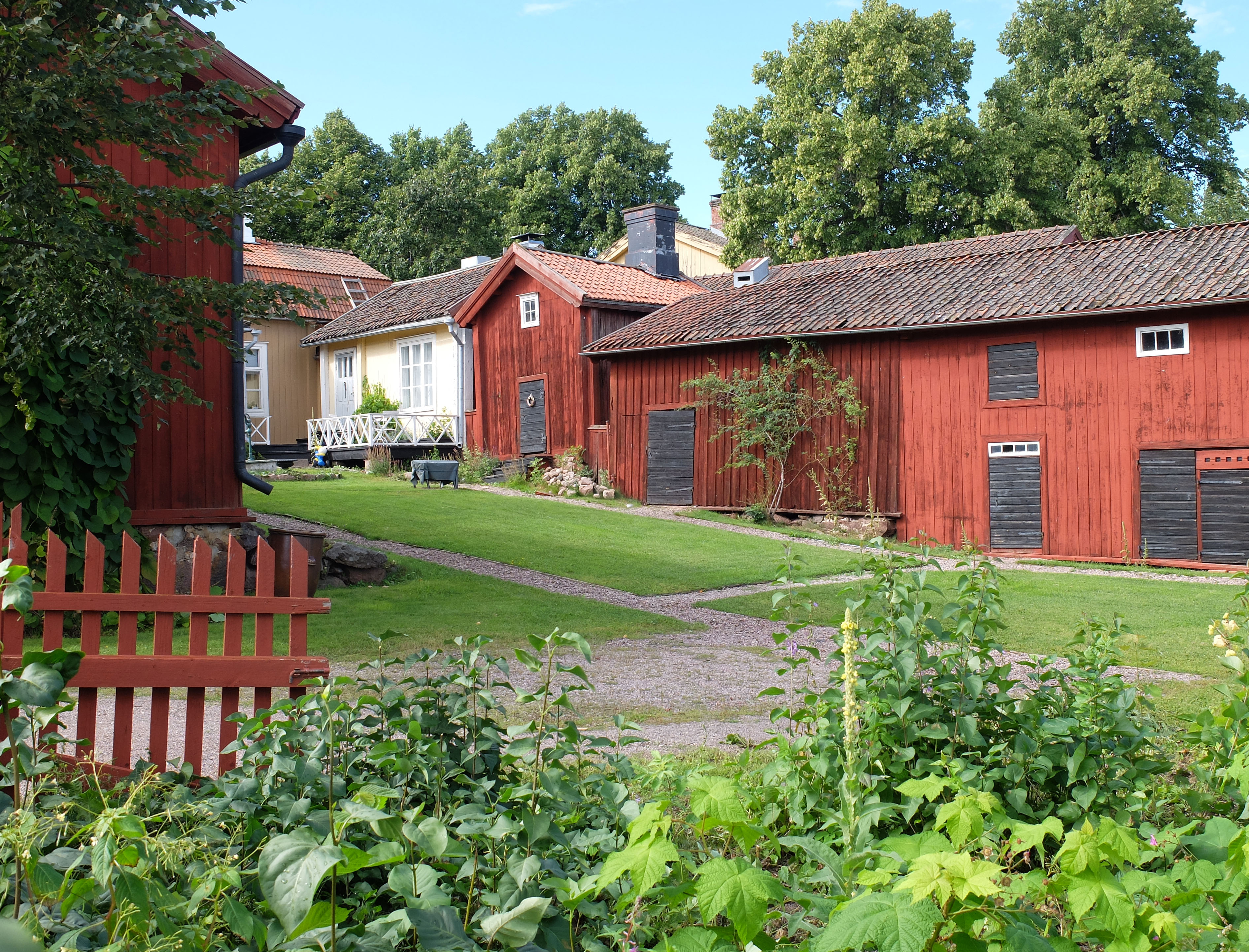 Puukaupunkitontin erilaiset tarverakennukset muodostavat suojaisan pihapiirin. Entisiä aittoja, talleja, navetoita ja vaunuvajoja voidaan nykyään käyttää esimerkiksi harrastus-, varasto ja verstastiloina. Kuva: Elisa El Harouny.