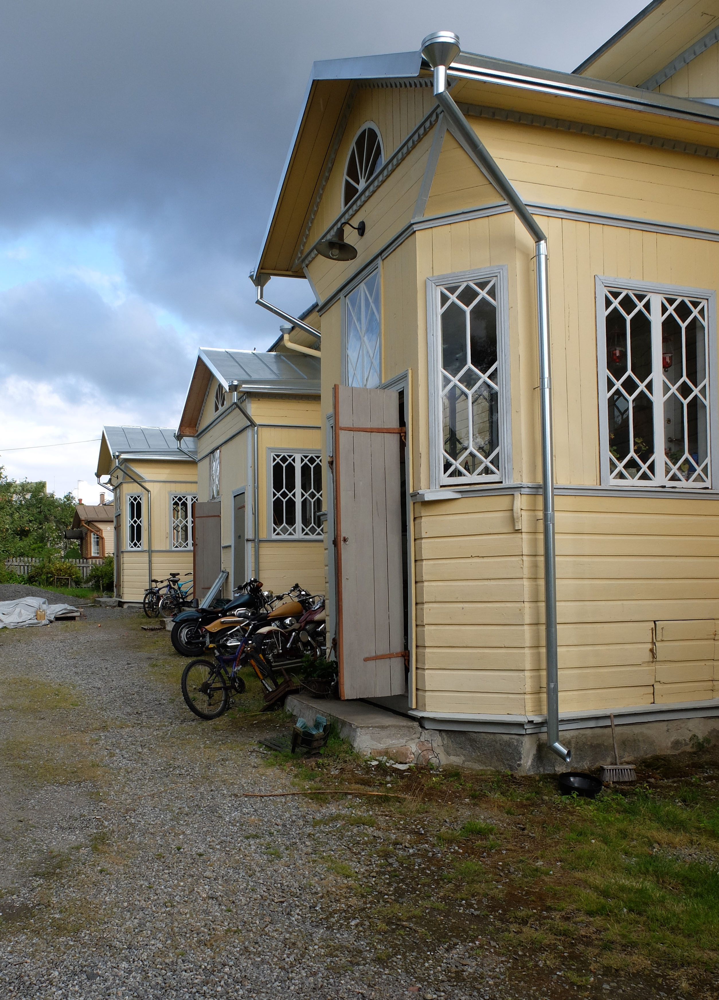 "Talousrakennuksissa on työhuone, vieraskamari, pyörien säilytystilaa, verstas ja ruokakellari. Tilaa on aika paljon enemmän verrattuna uusiin. Asunto muuttuu ja elää, se on iso asia, on paljon joustavampaa kuin missään uudessa. Aluksi kunnostettiin itselle pikkutalo. Perheen kasvaessa vaihdettiin anopin kanssa ja asutaan nyt kadunvarsitalossa."