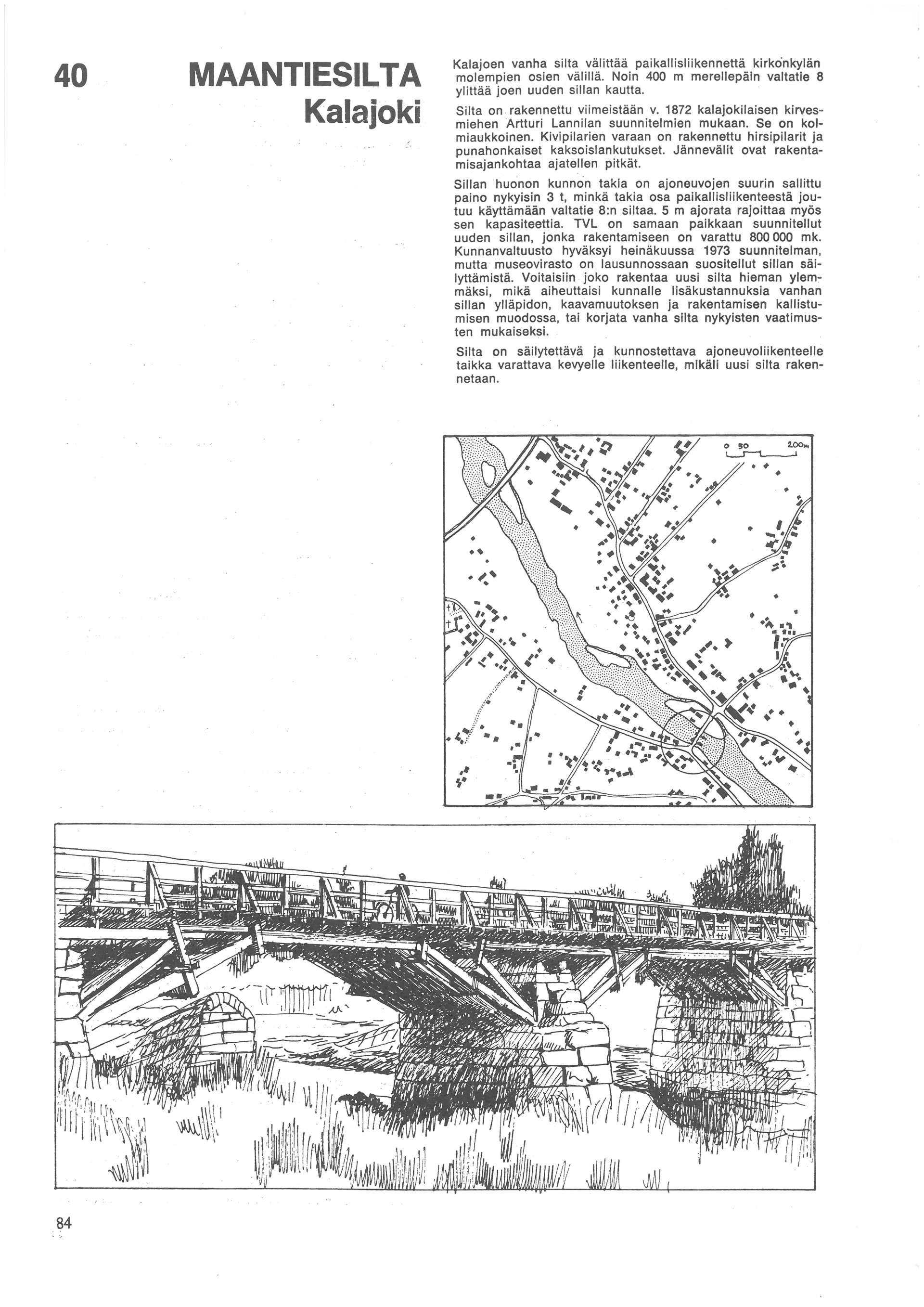 Kalajoen maantiesilta. Skannaus Komiteamietinnön sivun 84 tekstistä ja kuvituksesta.