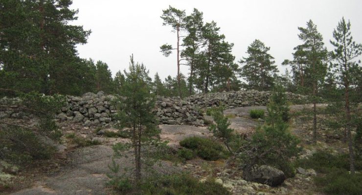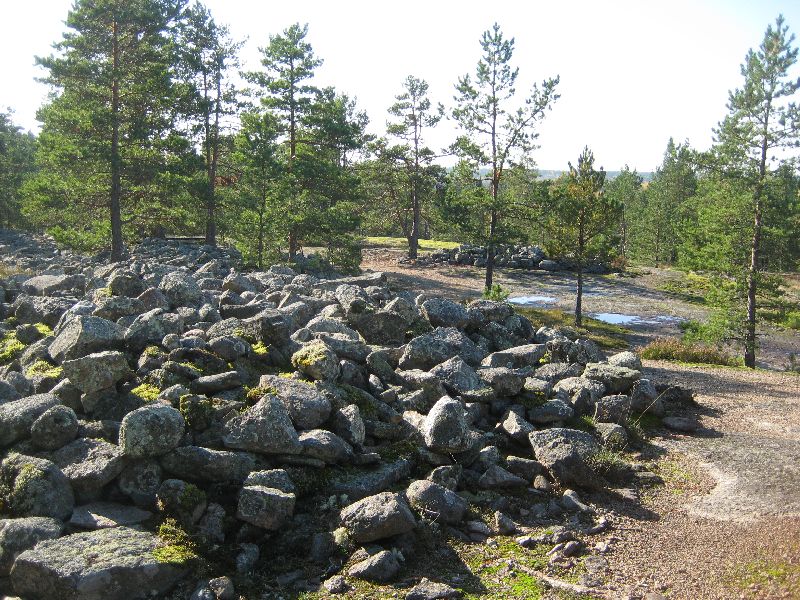 Yksi mystisimmistä rakennelmista on niin kutsuttu Huilun pitkä raunio, joka tutkittiin jo vuonna 1891. Se on ilmeisesti rakennettu kolmessa eri vaiheessa. Kuva: Leena Koivisto, Museovirasto (AKDG2254:15).