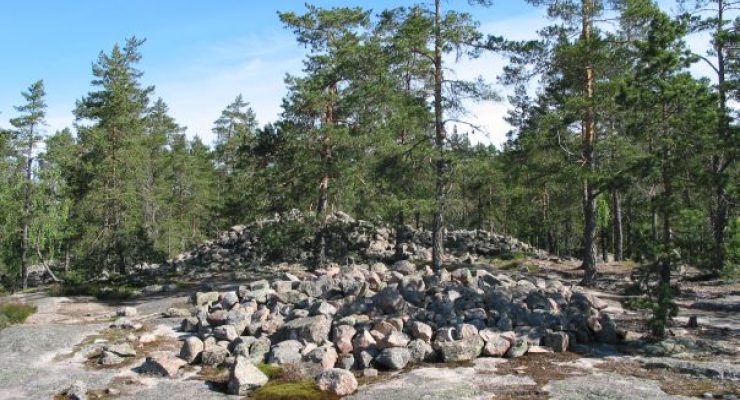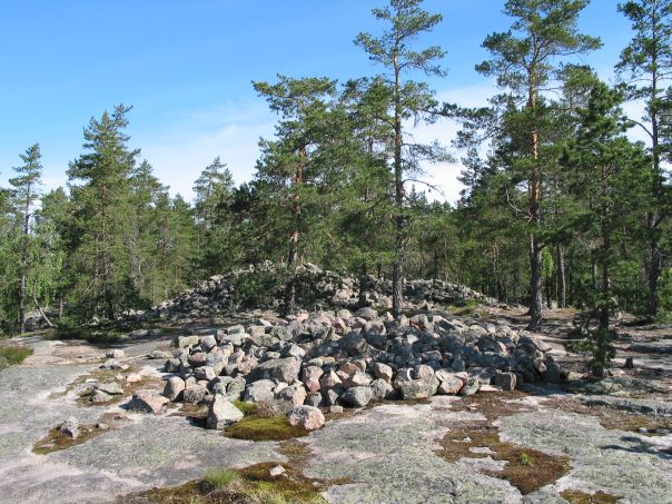 Hautataröykkiöt sijaitsevat Sammallahdenmäen laella nauhamaisesti muodostaen muutaman röykkiön ryhmiä. Kuva: Leena Koivisto, Museovirasto (AKDG565:6).