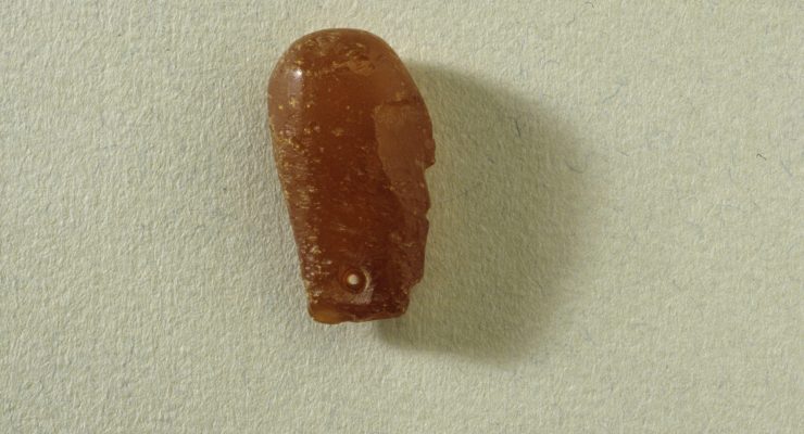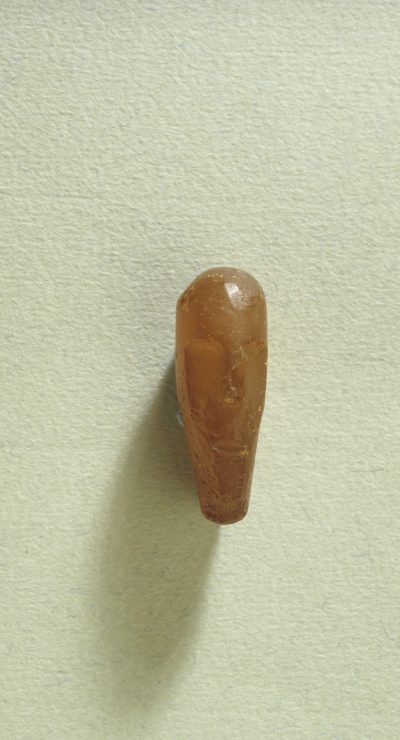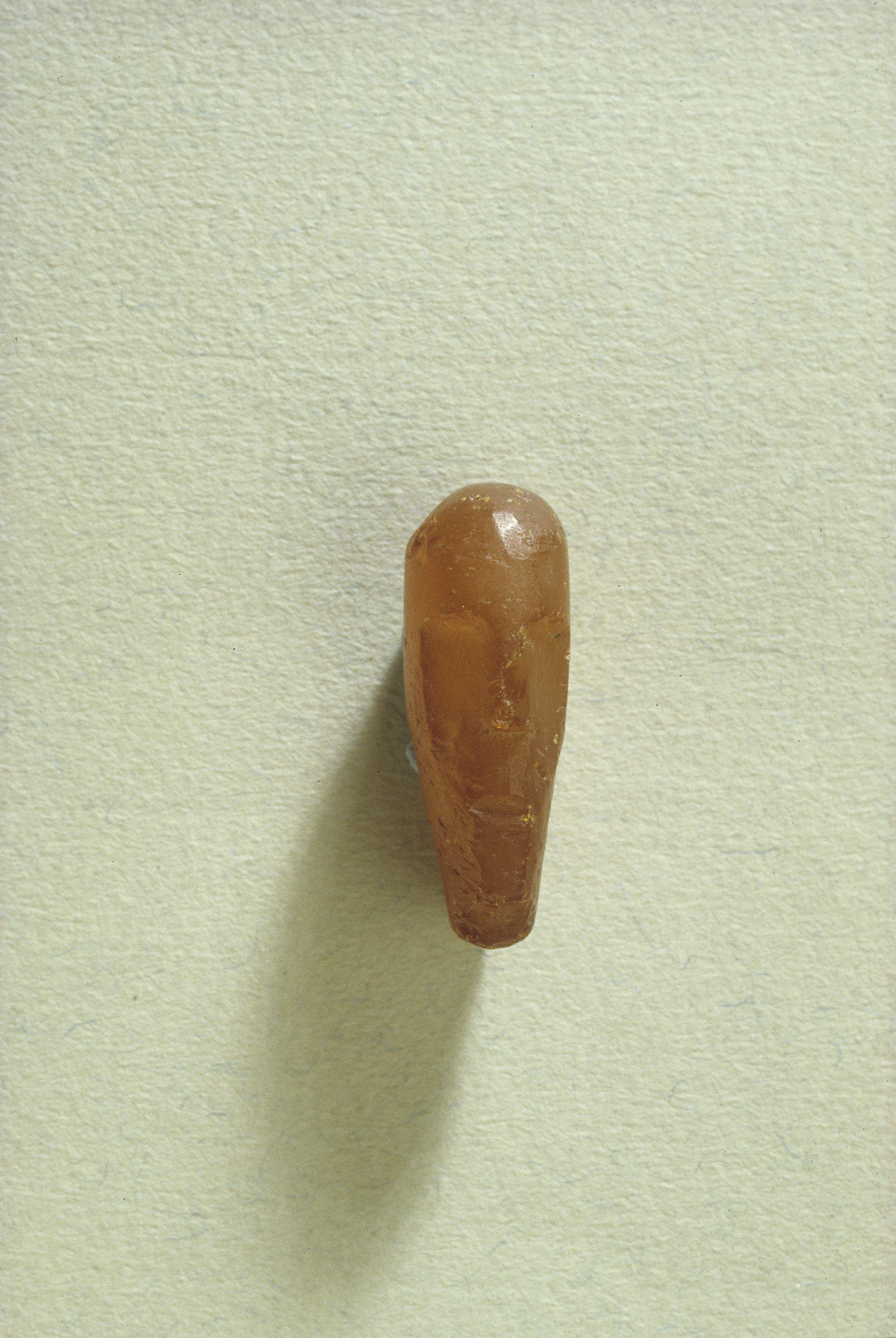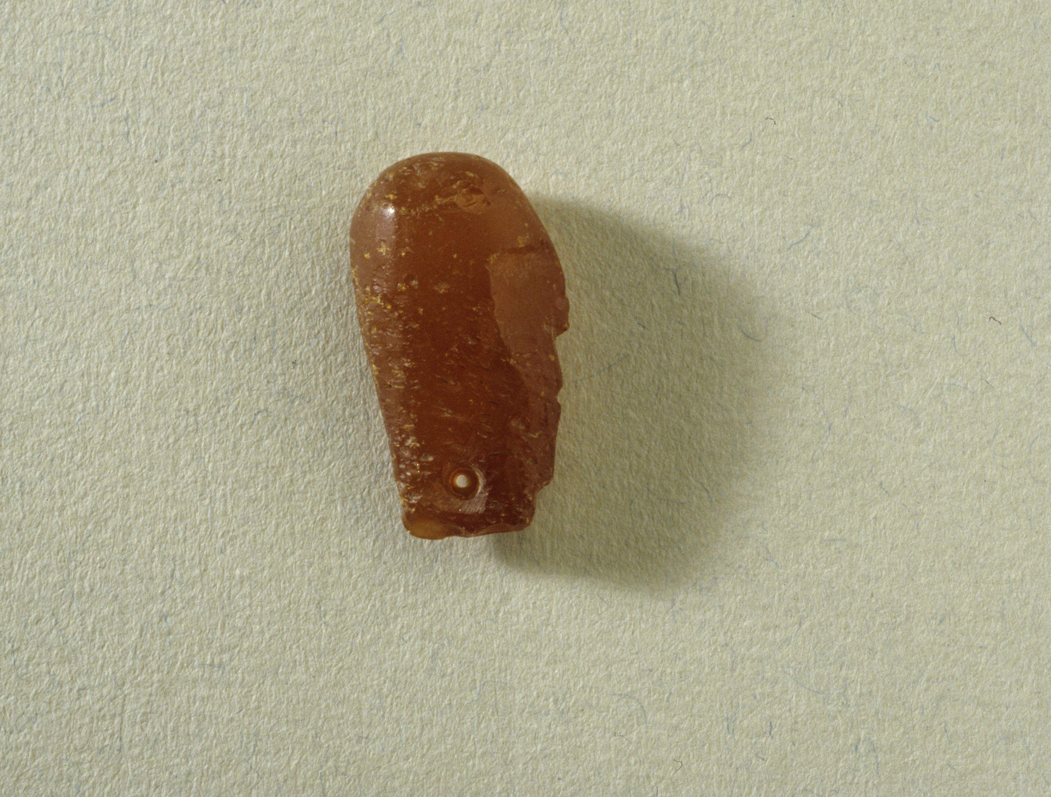 Paikalta järvenpohjasta löytynyt meripihkariipus edestä. Kuva: Ritva Bäckman, 1990, Museovirasto, (KM 25771).
