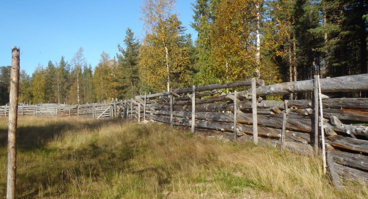 Kittilän Sammalselän erotuspaikan perkka-aita on rakennettu vanhan mallin mukaan 1980-luvulla tehtyjen kunnostustöiden yhteydessä. Kuva: Mikko Mälkki.
