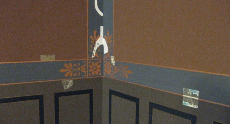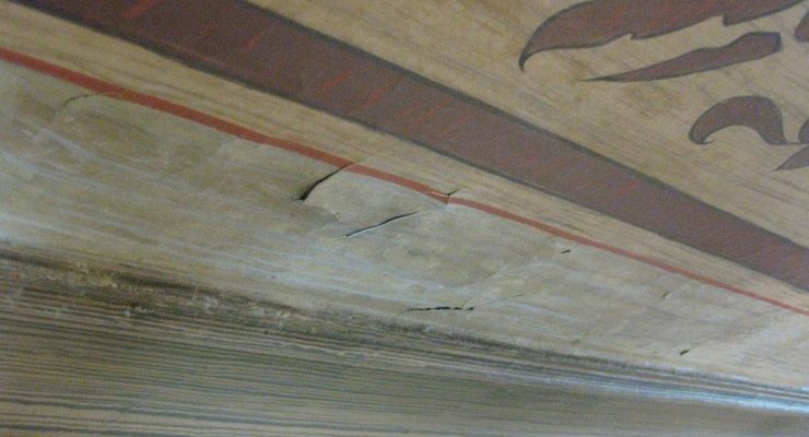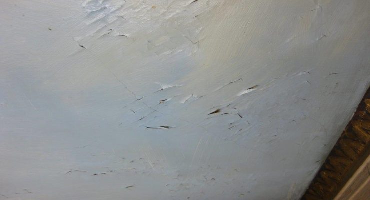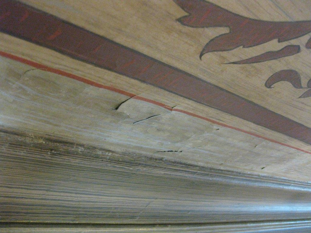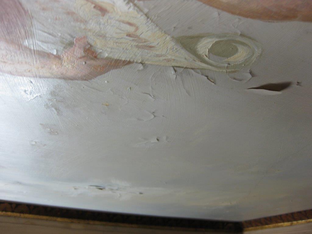 Krakeloituvaa ootrattua pintaa kattomaalauksessa. Kuva: Ulla Setälä.