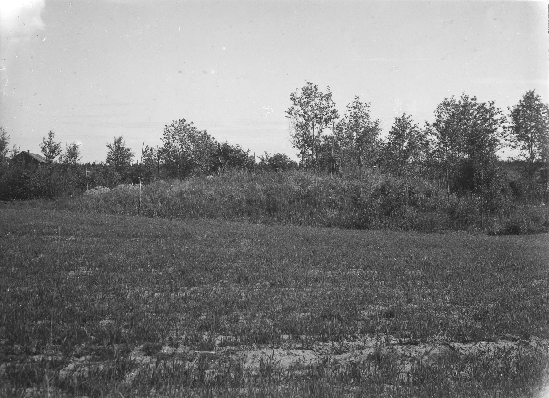 Vitelen Pirdoilan hautakummut eli kurgaanit ennen kaivausta. Etualalla hautakumpu II; kumpu I on aivan sen takana. Hiekasta kasatut kummut olivat noin metrin korkuisia ja erottuivat hyvin maisemassa. Hautaukset löytyivät kumpujen pohjalta niiden keskiosasta. Kuva Ella Kivikoski 1943 Museovirasto.