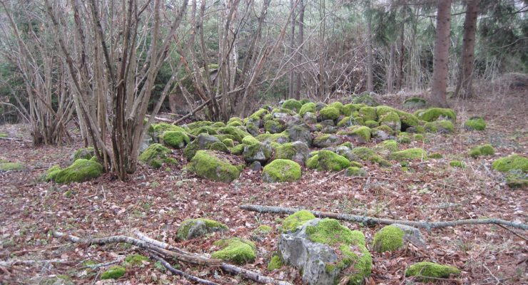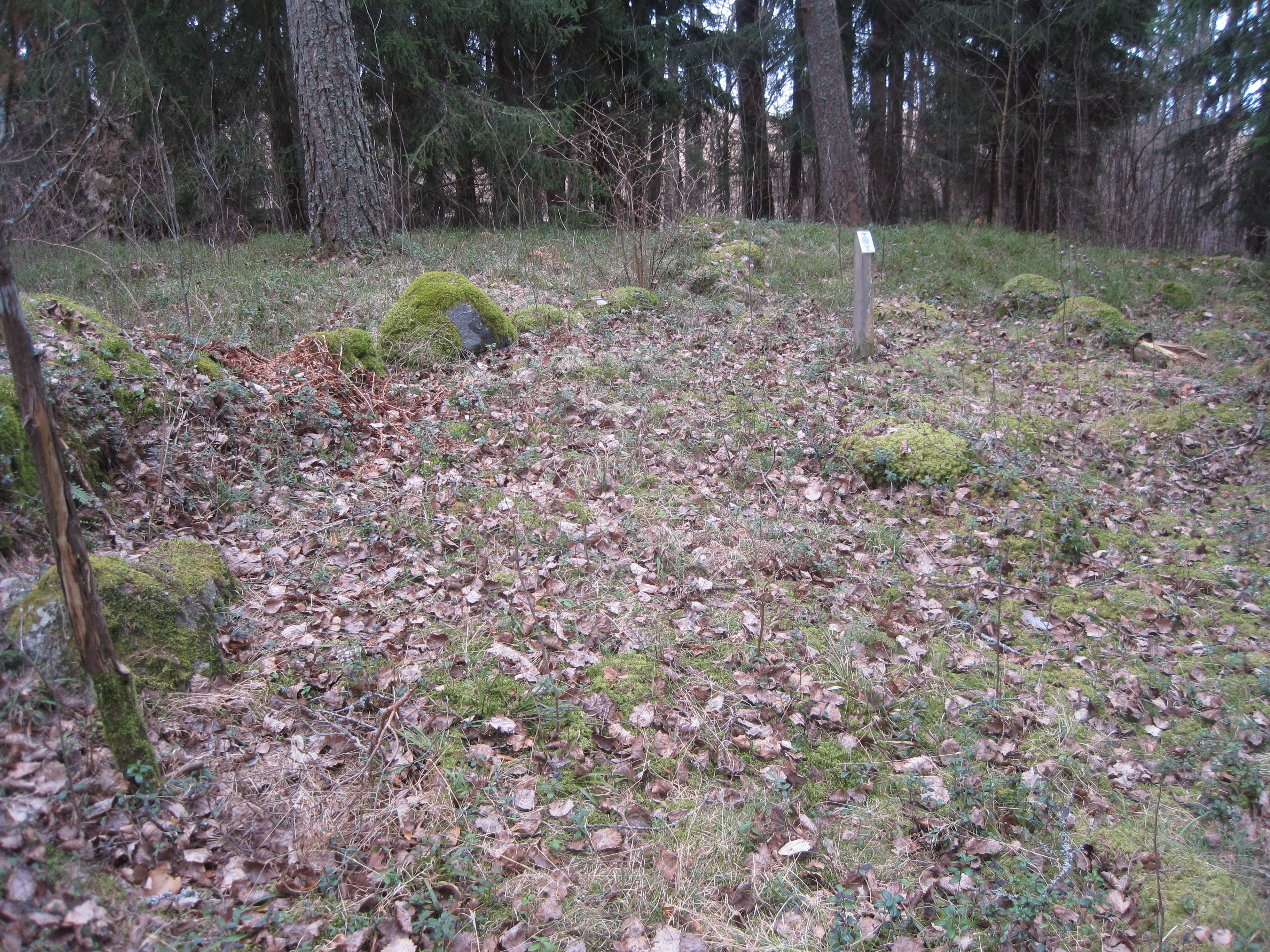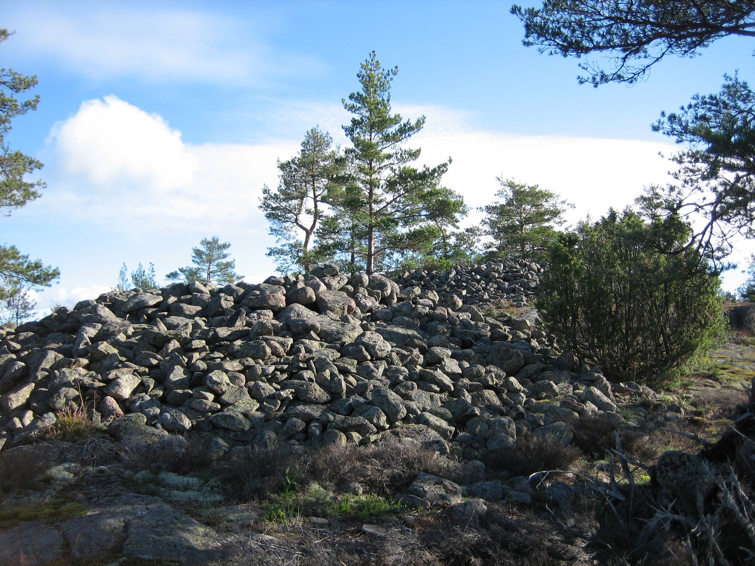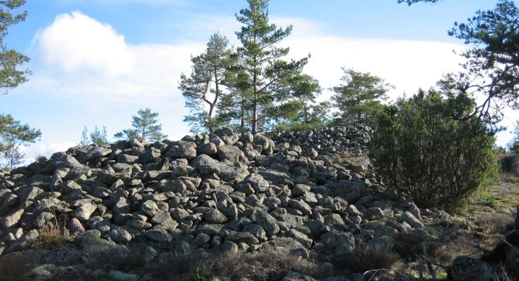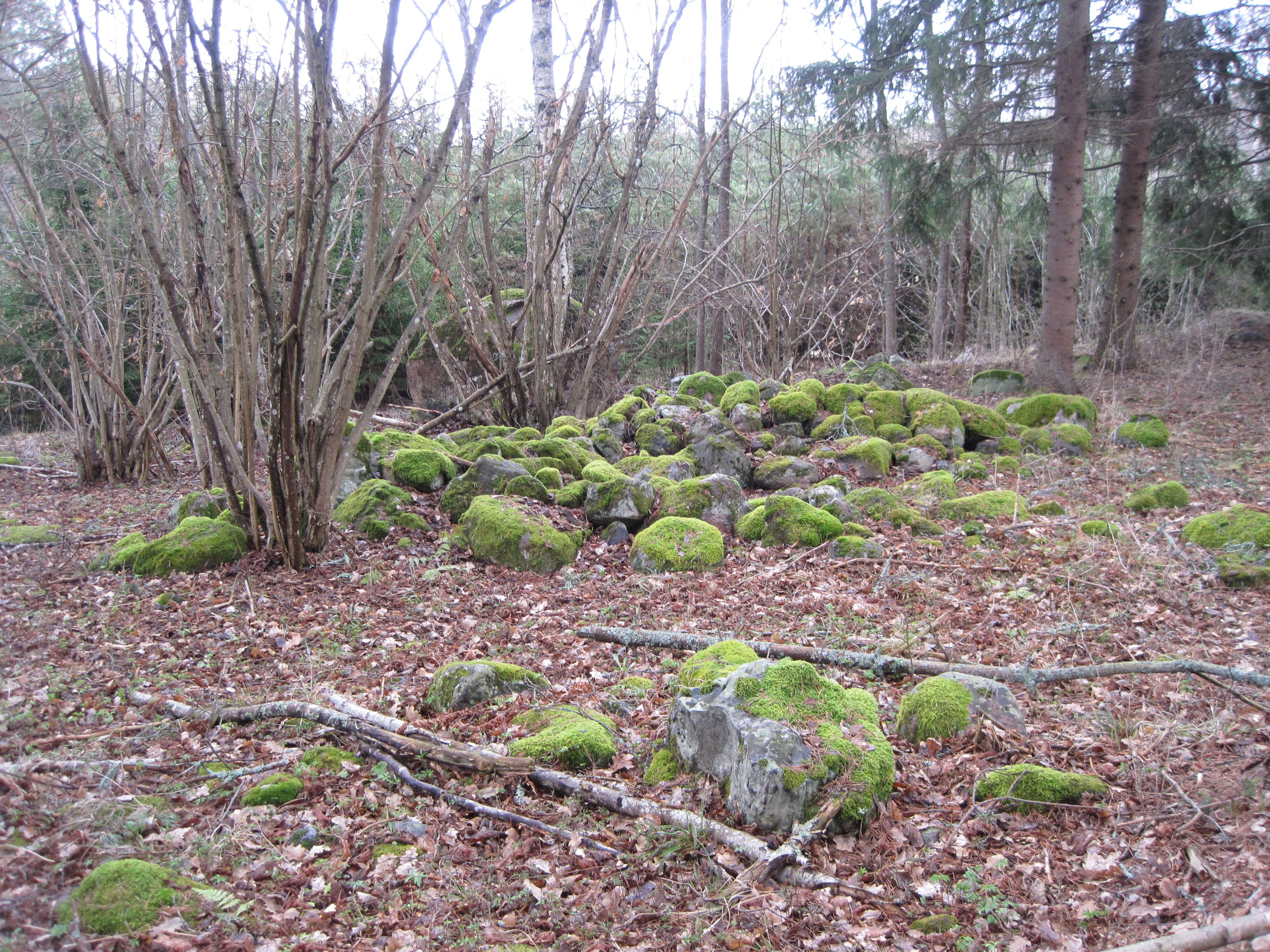 Kummel från järnåldern. Arorinne i Lojo nämns i Anna-Lisa Lindelöfs förteckning över gravruiner i Nyland från år 1913 som arkiverats i häradens berättelser i Museiverket. Foto: Päivi Maaranen.